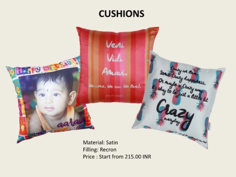CUSHIONS Material: Satin Filling: Recron Price : Start from 215.00 INR
