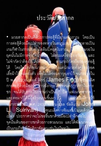 จุดเริ่มต้นของการชกด้วยการสวมนวม และได้พัฒนาจนมา