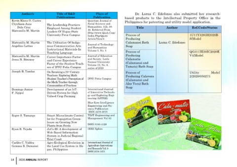 Author/s Title of R&D Place of Dr. Lorna C. Ildefonso also submitted her research-