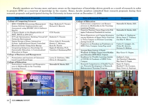 to promote IFSU as a reservoir of knowledge in the country. Hence, faculty members submitted their research proposals during their