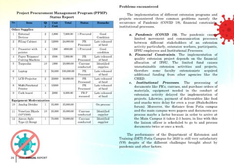 Project Procurement Management Program (PPMP) The implementation of different extension programs and