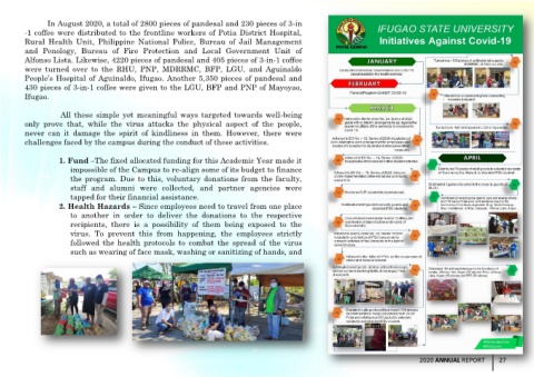 In August 2020, a total of 2800 pieces of pandesal and 230 pieces of 3-in