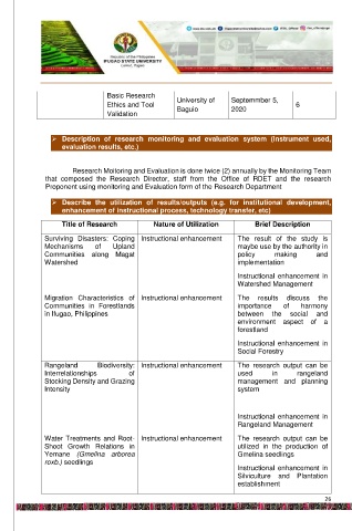 Research Moitoring and Evaluation is done twice (2) annually by the Monitoring Team