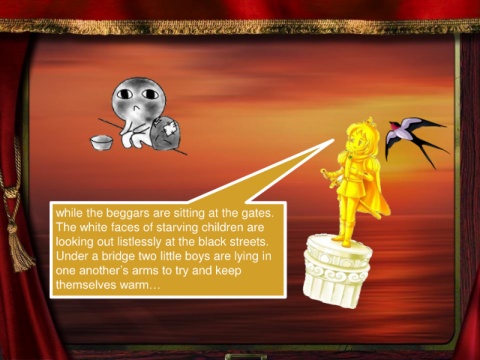 while the beggars are sitting at the gates. The white faces of starving children are looking out listlessly at the black streets. Under a bridge two little boys are lying in one another’s arms to try and keep themselves warm…