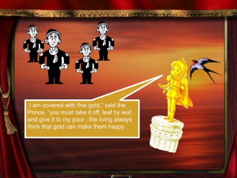 I am covered with fine gold,” said the Prince, “you must take it off, leaf by leaf, and give it to my poor ; the living always think that gold can make them happy.