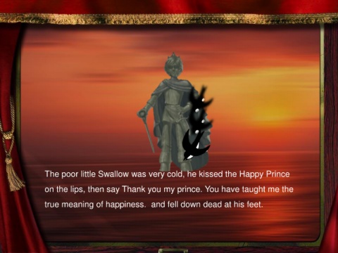 The poor little Swallow was very cold, he kissed the Happy Prince on the lips, then say Thank you my prince. You have taught me the true meaning of happiness. and fell down dead at his feet.