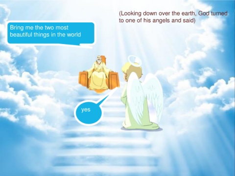 (Looking down over the earth, God turned to one of his angels and said) Bring me the two most beautiful things in the world yes