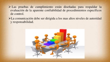Las pruebas de cumplimiento están diseñadas para respaldar la evaluación de la aparente confiabilidad de procedimientos específicos de control. La comunicación debe ser dirigida a los mas altos niveles de autoridad y responsabilidad.
