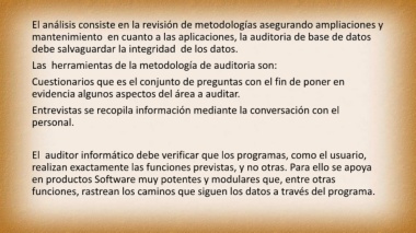 mantenimiento en cuanto a las aplicaciones, la auditoria de base de datos