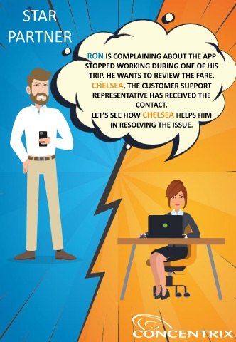 STAR PARTNER RON IS COMPLAINING ABOUT THE APP STOPPED WORKING DURING ONE OF HIS TRIP. HE WANTS TO REVIEW THE FARE. CHELSEA, THE CUSTOMER SUPPORT REPRESENTATIVE HAS RECEIVED THE CONTACT. LET’S SEE HOW CHELSEA HELPS HIM IN RESOLVING THE ISSUE.