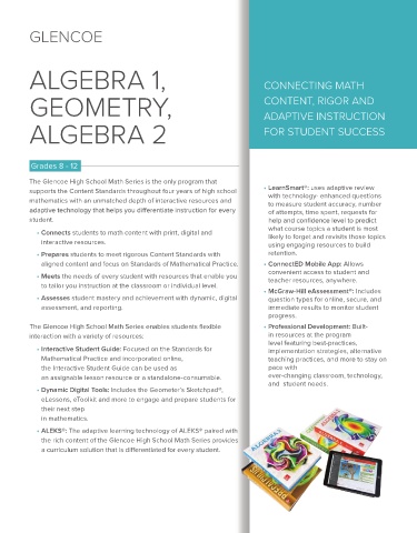 supports the Content Standards throughout four years of high school • LearnSmart®: uses adaptive review