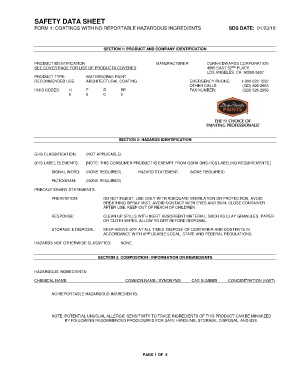 FORM 1: COATINGS WITH NO REPORTABLE HAZARDOUS INGREDIENTS SDS DATE: 01/23/18