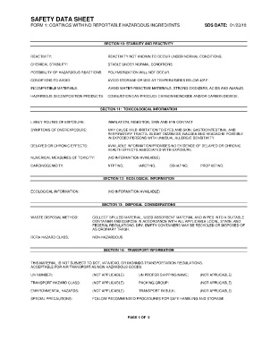 FORM 1: COATINGS WITH NO REPORTABLE HAZARDOUS INGREDIENTS SDS DATE: 01/23/18
