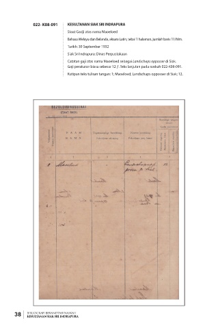Kutipan teks tulisan tangan: 1; Maoeloed; Landschaps opposser di Siak; 12.