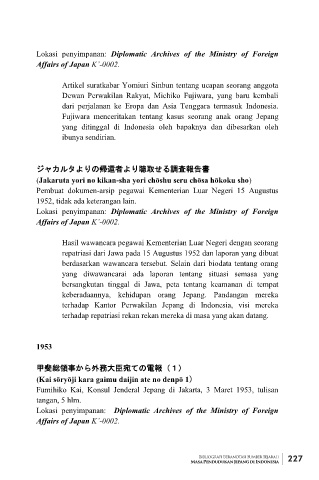 Fumihiko Kai, Konsul Jenderal Jepang di Jakarta, 3 Maret 1953, tulisan