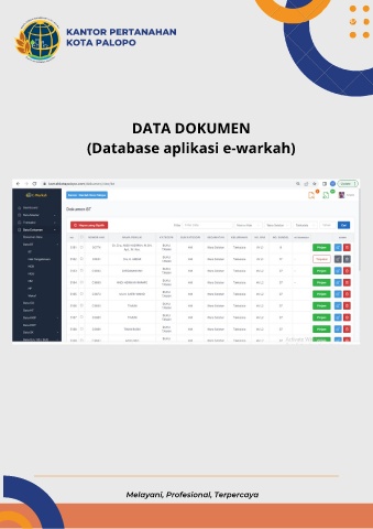 KANTOR PERTANAHAN KOTA PALOPO DATA DOKUMEN (Database aplikasi e-warkah) Melayani, Profesional, Terpercaya
