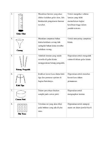 8. Teteskan zat yang akan diuji Digunakan untuk menguji