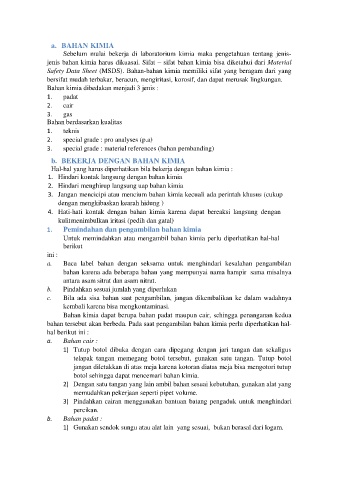 bahan tersebut akan berbeda. Pada saat pengambilan bahan kimia perlu diperhatikan hal-