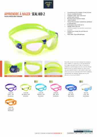 au visage des petits dès 3 ans. Le Seal Kid 2 emploie la technologie à verres incurvés d’Aqua Sphere pour un grand champ de vision, pour une plus grande aisance des enfants dans l’eau. Grâce aux boucles latérales facilement réglables, l’ajustement du masque, même sur les yeux, devient un vrai jeu d’enfant !