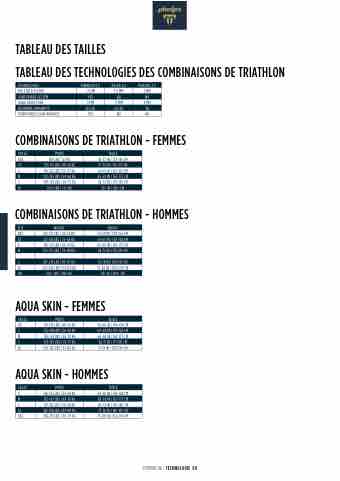 TABLEAU DES TECHNOLOGIES DES COMBINAISONS DE TRIATHLON