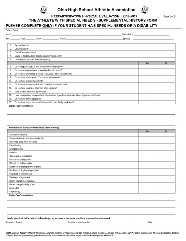 PREPARTICIPATION PHYSICAL EVALUATION 2018-2019 Page 2 of 6
