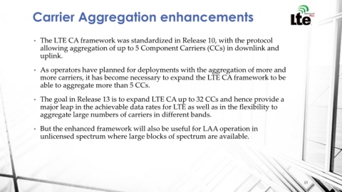 • The goal in Release 13 is to expand LTE CA up to 32 CCs and hence provide a