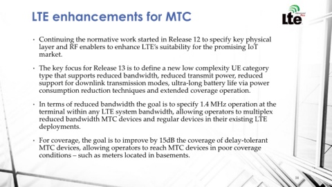 layer and RF enablers to enhance LTE’s suitability for the promising IoT