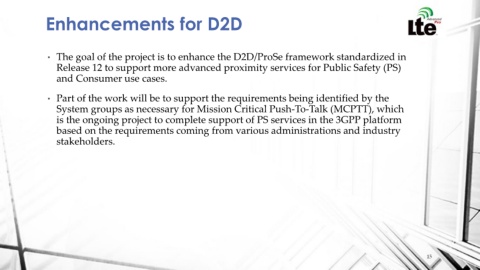 • The goal of the project is to enhance the D2D/ProSe framework standardized in