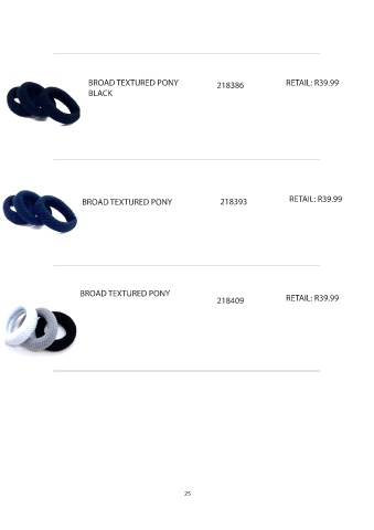 BROAD TEXTURED PONY 218386 RETAIL: R39.99 BLACK BROAD TEXTURED PONY 218393 RETAIL: R39.99 BROAD TEXTURED PONY 218409 RETAIL: R39.99 25