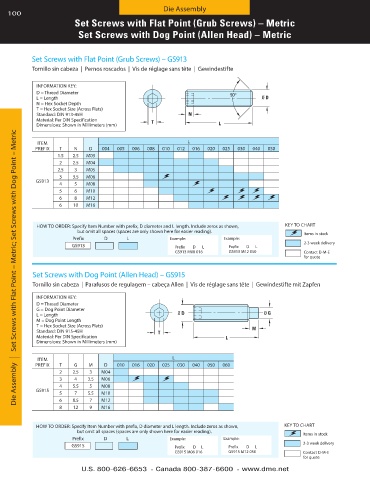 Die Assembly | Set Screws with Flat Point – Metric; Set Screws with Dog Point – Metric