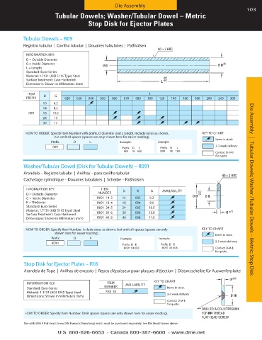 INFORMATION KEY: ITEM D K G AVAILABILITY Die Assembly | Tubular Dowels; Washer /Tubular Dowels – Metric; Stop Disk
