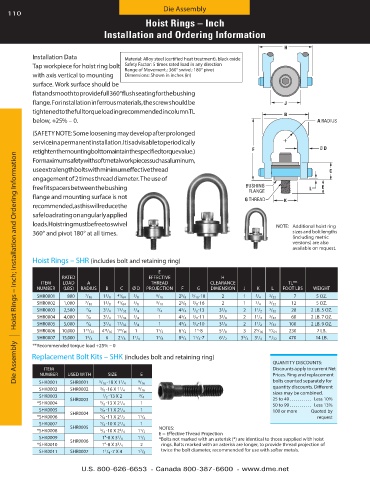 Die Assembly | Hoist Rings – Inch; Installation and Ordering Information