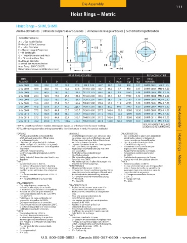 – Pivots and swivels to compensate for – Gleichmäßiges anheben von schweren oder – Eles se articulam e giram para compensar Die Assembly | Hoist Rings – Metric
