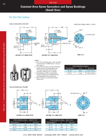 Die Cast | Constant Area Sprue Spreaders and Sprue Bushings (Small Size)