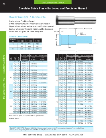 QUANTITY DISCOUNTS: Shoulder Guide Pins . Discounts apply to current Net Prices . Any combination of pins and bushings