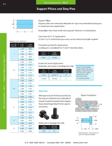 2 .500 6090 Locating pins unavailable for 3" and 4" diameter pillars .