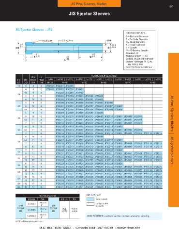 3 .5 6 .5 11 6 JFS0214 JFS0314 JFS0414 JFS0514 JFS0614 JFS0714 JFS0814 JFS0914 JFS1014 JIS Pins, Sleeves, Blades | JIS Ejector Sleeves