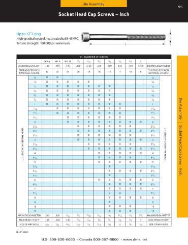 L = LENGTH UNDER THE HEAD 2 / 4 ■ ■ ■ ■ ■ ■ ■ ■ ■ ■ ■ ■ ■ ■ ■ ■ ■ ■ ■ ■ ■ ■ ■ 2 / 4 L = LENGTH UNDER THE HEAD Die Assembly | Socket Head Cap Screws – Inch