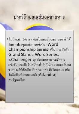 •ในปี ค.ศ. 1996 สหพันธ์วอลเลย์บอลนำนำชำติ ได้