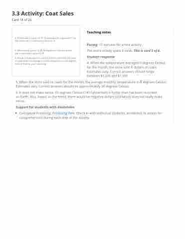 5. When the store sold no coats for the month, the average monthly temperature is degrees Celsius. Estimates vary. Correct answers should be approximately 30 degrees Celsius.