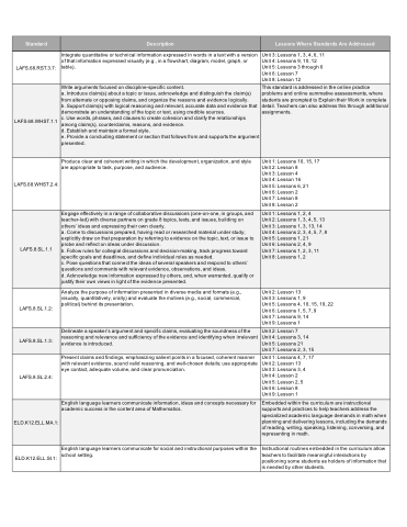 Unit 2: Lessons 1, 3, 4, 5, 13 Unit 3: Lessons 1, 3, 13, 14 Unit 4: Lessons 2, 3, 4, 5, 7, 8 Unit 5: Lessons 1, 21