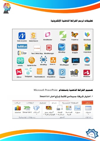 تطبيكات لسضه الخسائط الرهيية الإلكتروىية: mindly draw.io MindMapper Mind42 تصنيه الخسائط الرهيية باضتدداو Microsoft PowerPoint SmartArt 184