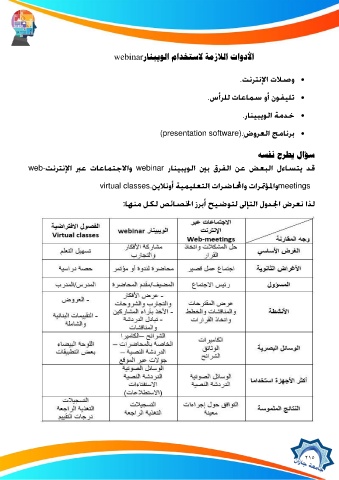 webinarالأدوات اللاشمة لاضتدداو الويبياز . . . (presentation software). web- webinar ضؤال يطسح ىفطه virtual classes. meetings : 215