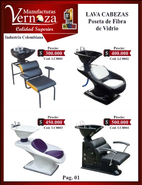 LAVA CABEZAS Poseta de Fibra de Vidrio Industria Colombiana Precio: Precio: $ 300.000 $ 400.000 Cod. LC0001 Cod. LC0002 Precio: Precio: $ 450.000 $ 500.000 Cod. LC0003 Cod. LC0004 Pag. 01