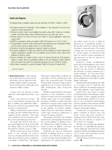 At Leader, the typical cycle time is the overall plating on plastics indus- the vehicle, for example.