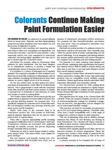 Greenguard Certification from UL Environment,” BASF says. these formulations. The colorants will impart minimal or