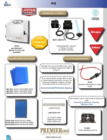 POLARIZED MEDIA AIR CLEANER UV LGHT ACCESSORIES