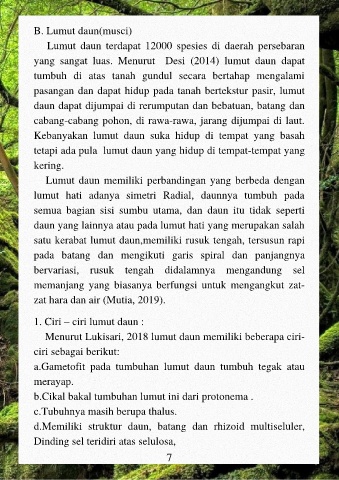 Menurut Lukisari, 2018 lumut daun memiliki beberapa ciri-