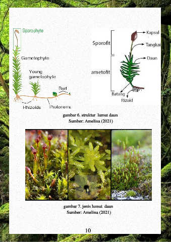 gambar 6. struktur lumut daun Sumber: Amelina (2021) gambar 7. jenis lumut daun Sumber: Amelina (2021) 10