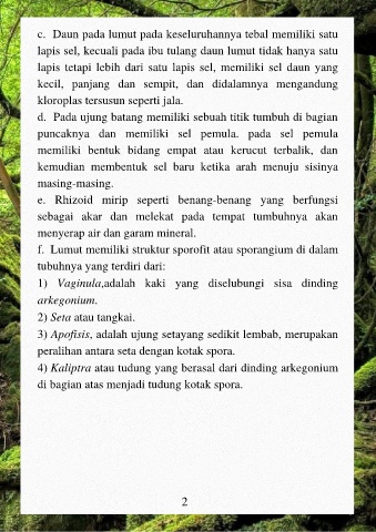 c. Daun pada lumut pada keseluruhannya tebal memiliki satu